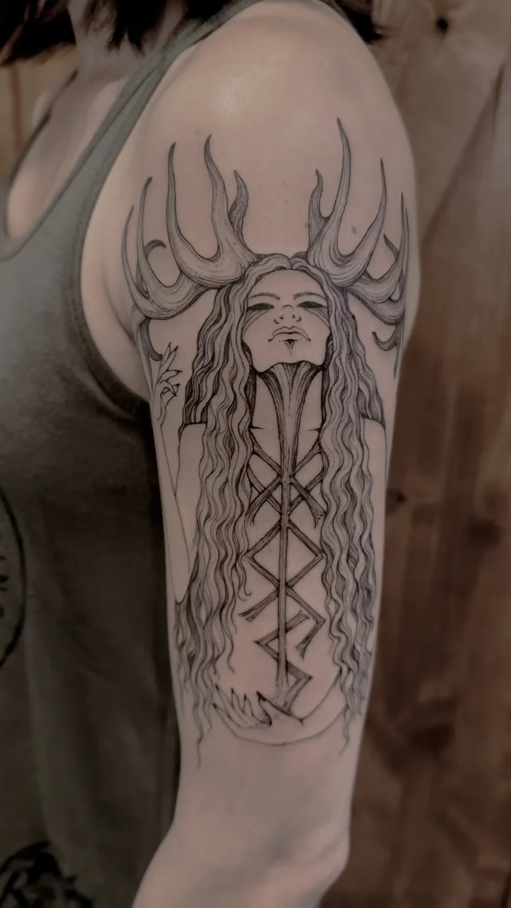 Greetings! My name is Megan Halvorson, and I am a Montana USA native and Missoula/Bozeman MT/Germany based tattoo artist. My passion in this life is tattooing the incredible designs associated with my Nordic, Celtic and Native ancestry. I fell in love with the historical art and mythologies of these cultures years ago when I started learning more about my heritage, and it just felt completely like home for me. It is beautiful and intricate and primal, and speaks to my soul in a way nothing has since I was a kid, fully at one with nature in the backwoods of Montana. It brings me back to that special place. I have been lucky enough to develop a following of folks who are also excited about this type of tattoo art, and who want me to tattoo them, and I will continue to do so as long as people are interested.